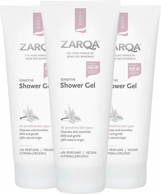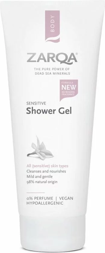 Zarqa Douchegel heeft een reinigende, verzorgende en verkoelende werking op de huid. Geschikt voor het hele gezin en ieder huidtype. Deze douchegel bevat geen parfum, siliconen of kleurstoffen en is daardoor ook geschikt voor mensen met een (zeer) gevoelige huid. De natuurlijke menthol geeft de Zarqa douchegel, zonder parfum, toch een frisse geur.