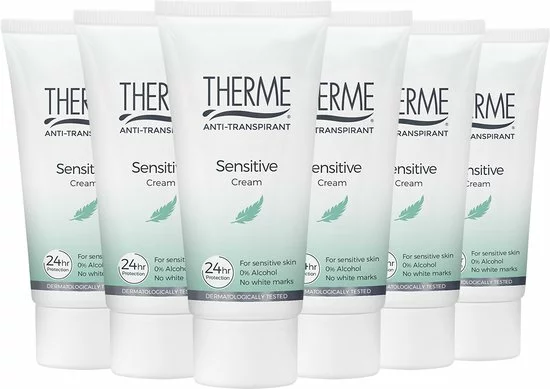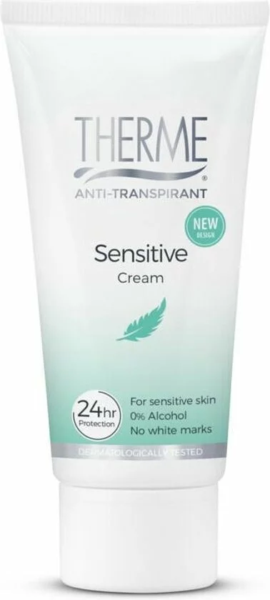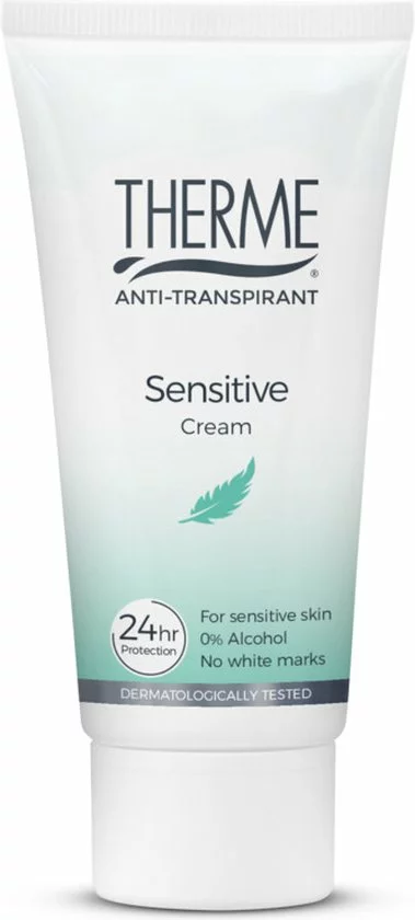 Deze Sensitive Crème van Therme is vrij van alcohol. Biedt 24 uur bescherming tegen transpiratie en transpiratiegeur.