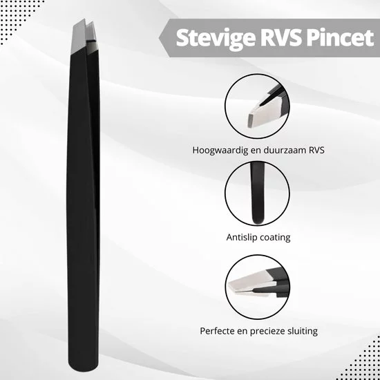 De wenkbrauwpincet is van hoge kwaliteit. Roestvrij staal, afgeronde randen en de matzwarte coating maken de pincet tot het perfecte schoonheidsproduct.