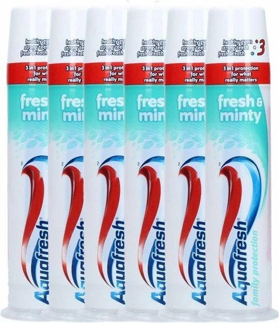 Aquafresh Family Protection Fresh & Minty tandpasta helpt om je gebit schoon en gezond te houden. Terwijl de tanden worden gepoetst komt de heerlijke smaak met verfrissende fluoride vrij. Dit helpt de tanden van buiten en van binnen sterker te maken.