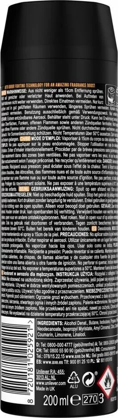 Maak je geen zorgen, we hebben niet geknoeid met de klassieke AXE Dark Temptation geur. We weten dat die al perfect is. Bij AXE geloven we dat een van de sleutels tot aantrekkingskracht een onweerstaanbare geur is. Daarom zijn wij toegewijd om je de beste tools te geven om ervoor te zorgen dat, wanneer de gelegenheid zich voordoet, jij op je best ruikt. Van onze bodyspray tot onze douchegel, van onze anti-transpirant spray tot onze deodorant voor mannen, we doen er alles aan om ervoor te zorgen dat aantrekkingskracht voor iedereen is. Het vernieuwde en verbeterde AXE. Smell ready! Zorg goed voor jezelf en voor onze planeet. AXE streeft ernaar dat al onze verpakkingen in 2025 recyclebaar zijn of gerecyclede materialen bevatten.