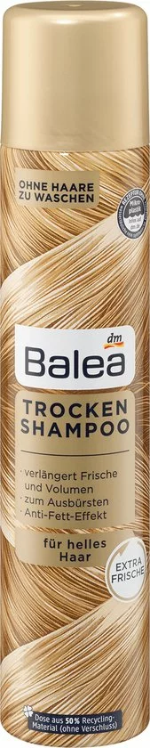Voor tussendoor en op reis: Balea Dry Shampoo Light Hair is de ideale dry wash tussen de normale haarwasbeurten door! Je haar wordt weer fris en vol. Bereik nieuw volume en veerkracht zonder water of föhnen! Formule zonder microplastics en in water oplosbare zuiver synthetische polymeren