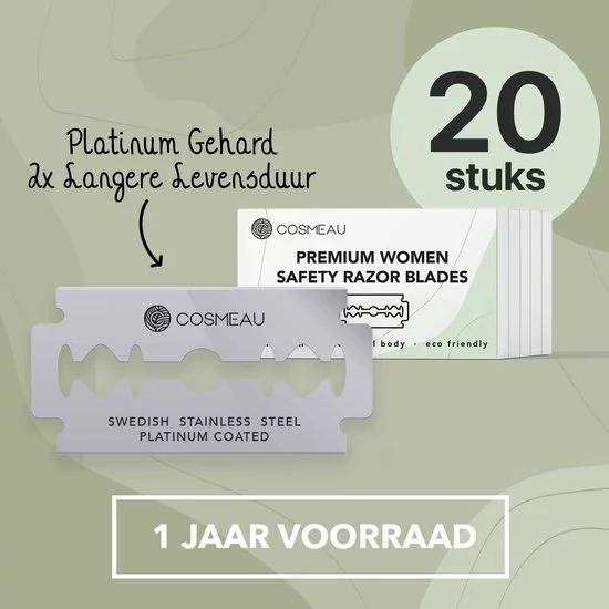 Inclusief 20 vlijmscherpe platinum scheermesjes met anti-roest coating