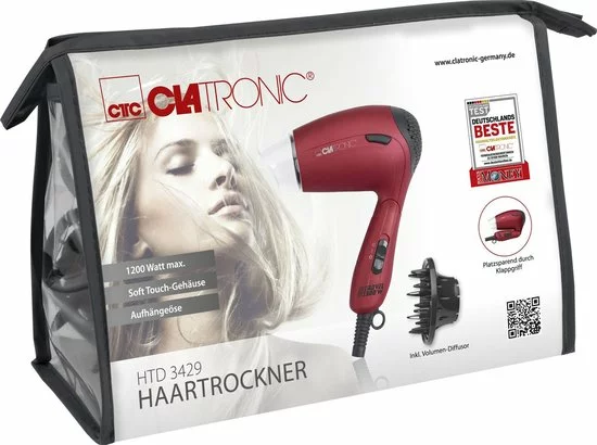 Clatronic HTD 3429 reishaardroger met opvouwbare handgreep en diffuser .
