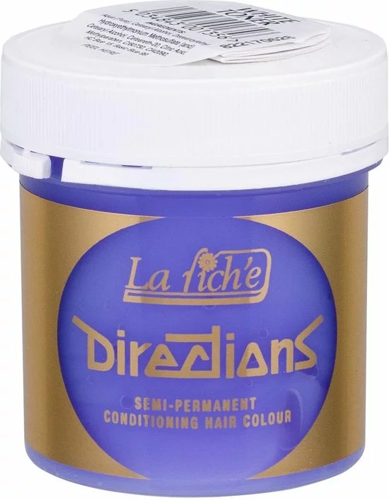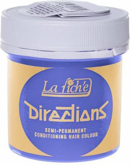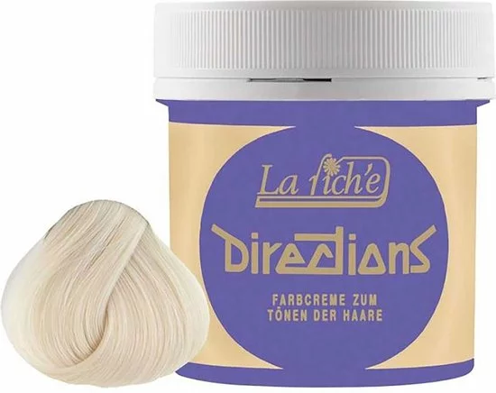 Directions Colours van La Riche. Direction Colours is een semi-permanente haarkleuring in pastavorm met de meest gekke kleuren. Directions Colours kan worden toegepast op natuurlijk haar, maar het beste resultaat bereik je als het haar geblondeerd is. Het geeft geen dekking op wit of grijs haar. Directions Colours is vrij van ammoniak en bevat geen waterstofperoxide.Directions Colours verkrijgbaar in 34 kleuren ! Een haarkleur bereiken van het brede scala aan waanzinnige en levendige kleuren van Directions Colours, en alle kleuren kunnen met elkaar gemengd worden om een eigen unieke tint te maken. Directions Colours producten van La Riche zijn niet getest op dieren. Gebruik: Was het haar eerst met een zure pH evenwichtige shampoo. De shampoo zal het haar de correcte zure balans geven, om zo met de La Riche Directions kleurcrème het beste resultaat te bereiken. Kam de La Riche Directions kleurcrème door het haar tot het emulgeert, zo kan het kleurpigment van de La Riche Directions schuimend het haar binnendringen. Lichtere lokken meerde malen doorkammen. De inwerktijd is tussen de 15 en 30 minuten. Door de warmte van een plastic muts bereik je met de haarkleuring van La Riche Directions een nog beter resultaat.Spoel het haar grondig uit met warm water totdat alle residu kleurcrème is verwijderd. Alle kleuren van la Riche Directions kunnen onderling worden gemengd, om zo je eigen unieke kleur te creëren. Als er meer dan één kleur wordt toegepast moet het haar afzonderlijk worden gewassen en gedroogd. Het haar moet met de grootste zorg worden behandeld, wanneer gebleekt haar gedeeltelijk word gekleurd.