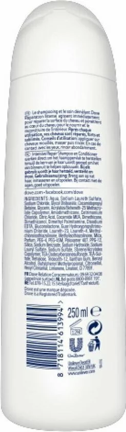 Dove Shampoo Intense Repair Speciaal ontwikkeld om beschadigd haar te helpen herstellen met Keratin Repair Actives