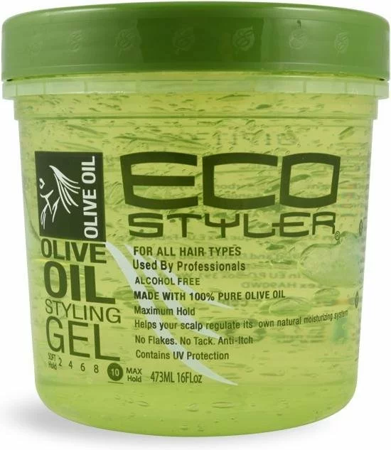 Ecostyler Olive Oil is een sterke holding gel geschikt voor iedere haartype en stijl en ideaal voor het laten poppen van je krullen. Eco Olive is gemaakt met 100% pure Olijfolie die je hoofdhuid helpt bij het reguleren van het natuurlijke vochtsysteem. De toegevoegde olijfolie houdt je haar zacht en gehydrateerd. Eco Olive geeft een maximale fixatie #10. Zoals alle andere Ecostyler gels veroorzaakt Eco Olive geen witte vlokken, is niet plakkerig en houdt vocht lang in je haar vast ,waardoor je haar in conditie blijft. De Ecostyler gels zijn vriendelijk qua inhoud, licht in gewicht en geven uitstekende kruldefinitie aan natuurlijk kroes en krullend haar. Ideaal voor Natural Hair styles: wash n go, twists, waves etc.
