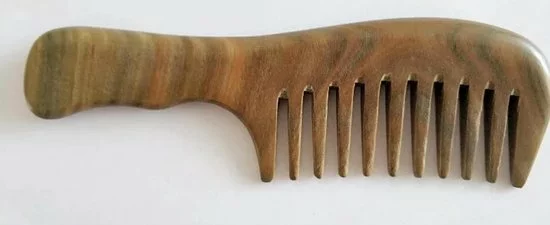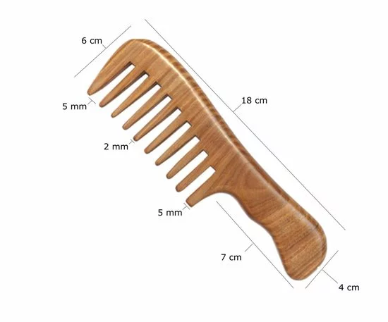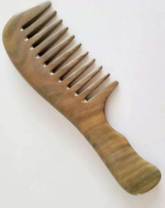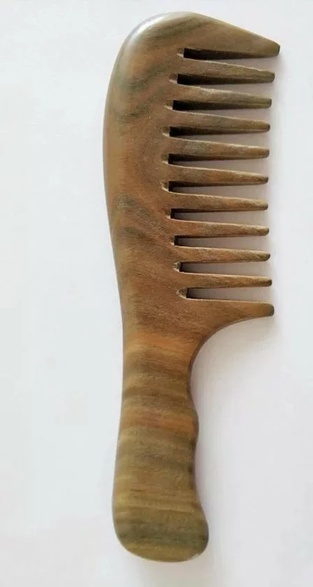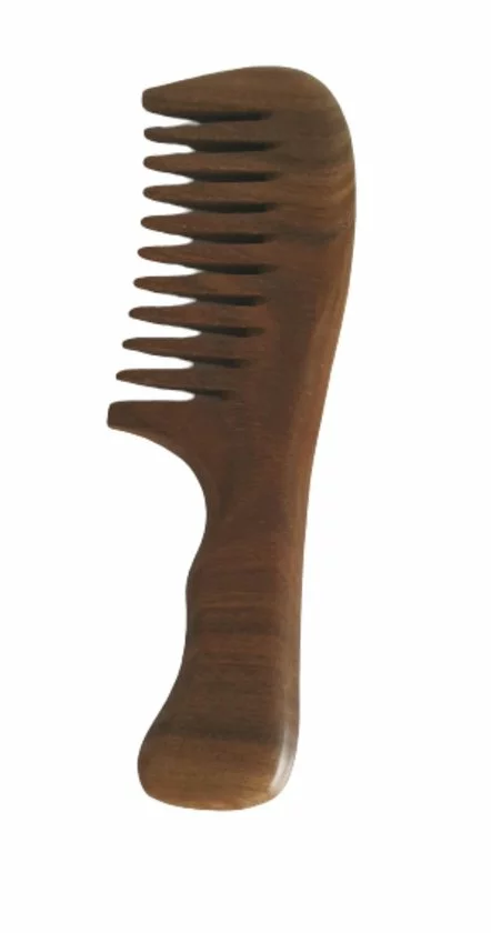 Deze grove kam, gemaakt van sandelhout, is ideaal voor het stylen, krullen, en kammen van droog en nat haar, of om een product te verdelen door nat haar, etc. De kam is zeer geschikt voor het kammen van weave haren en pruiken, waarmee haaruitval uit weaves of pruiken kan worden voorkomen. Ook zeer geschikt voor het kammen van kroeshaar. De gepolijste ronde tanden kunnen tevens worden gebruikt als lichte hoofdhuidmassage, goed voor de doorbloeding en daarmee de haargroei.