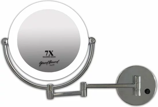 Strakke en uiterst stevige metalen wand spiegel die voorzien is van LED. De LED verlichting maakt deze spiegel niet alleen energie zuinig maar geeft ook nog eens een helder wit daglicht af, hierdoor kunt u zich perfect opmaken, epileren, scheren, haar doen of uw lenzen inbrengen. Ook beschikt de spiegel over een handige knik arm zodat u de spiegel naar u toe kunt halen, hierdoor heeft u een uiterst luxe hotelkamer spiegel voor bijvoorbeeld in de badkamer. De spiegel werkt op 4 AA batterijen of is te gebruiken met de USB stroomkabel, beiden worden meegeleverd. Met de stroomkabel kan de spiegel van stroom voorzien worden dat is extra handig als deze op een vaste plek komt te hangen, echter laad deze de batterijen niet op! De spiegel is aan beide zijden te gebruiken, met aan de ene zijde een normale vergroting en aan de andere zijde een 7x vergroting. U kunt de spiegel zelf roteren zodat u makkelijk kunt switchen tussen de normale en de vergrotende kant. De spiegel heeft een doorsnee van 22cm.