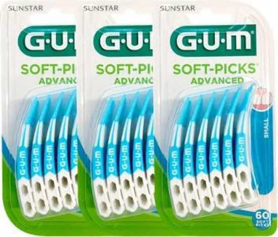 GUM Soft Picks Advanced Small zijn de nieuwste ragers die GUM heeft ontwikkeld. Het stevige handvat zorgt voor extra grip. U verwijderd effectief het tandplak tussen uw tanden en tegelijkertijd masseert en stimuleert u het tandvlees. De zachte rubberen borsteltjes zijn geschikt voor eenmalig gebruik.