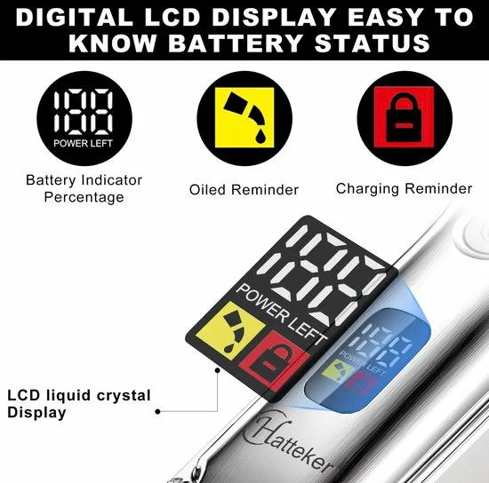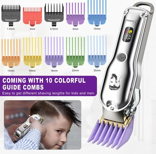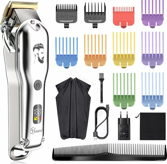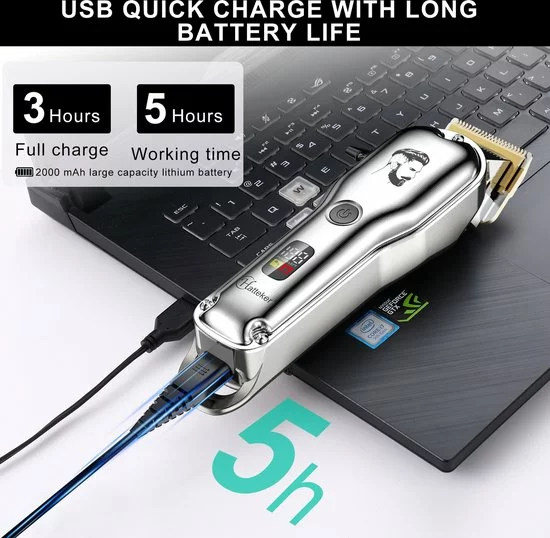 HATTEKER De premium tondeuse met een geavanceerde gepatenteerde motor die aanzienlijke kracht en snelheid levert zonder extra warmte en lawaai te genereren. 300 minuten werktijd en de stroomindicator met LED-display, zodat u zich geen zorgen hoeft te maken dat de tondeuse plotseling zonder stroom komt te zitten. Het is uiterst duurzaam en ontworpen voor langdurige prestaties voor jarenlang gebruik. Thuis of in een kapsalon, deze tondeuse is de beste keuze.