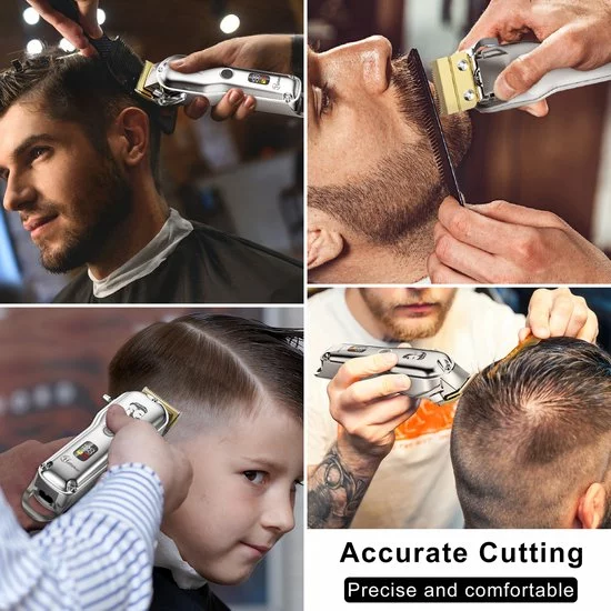 Professionele tondeuse: Het stalen mes van de snoerloze tondeuse blijft langer scherp zodat u verschillende haarstijlen kunt proberen en het mes kan gemakkelijk worden verwijderd en gereinigd met water.