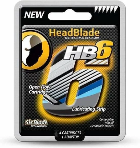 Gebruik je de Headblade ATX en ben je door je scheermesjes heen? Met de HB6 navulblades van Headblade scheer jij weer vrolijk verder. Oorspronkelijk wordt op de ATX een vierbladig scheermes geleverd, maar deze HB6 bestaat uit maar liefst zes mesjes. Dit scheermesje heeft alle functies van de HB4, zoals flow door design en naadloze opbouw, maar door de twee extra bladen wordt elk haartje nog gemakkelijker en sneller afgeschoren. Deze kit bestaat uit een adapter en vier messen.