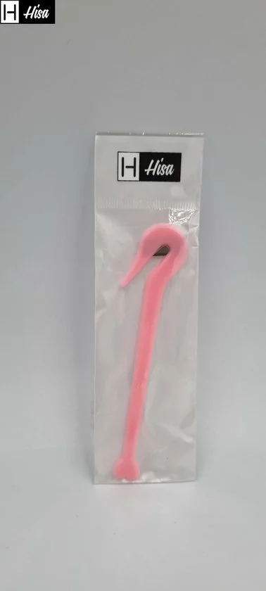 Met gebruik van het Hisa elastiekmesje verwijdert u gemakkelijk kleine rubberen haarelastiekjes uit het haar. Door de smalle punt kunt u gemakkelijk onder het elastiekje komen. Terwijl u het haar beethoudt trekt u het mesje steeds verder naar u toe totdat het elastiekje de scherpe rand van het mes raakt en het elastiekje knapt. Het verwijderen van mini elastiekjes is nog nooit zo eenvoudig geweest.