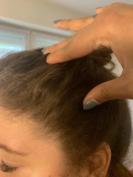 Met het sponsje kun je het poeder gemakkelijk opnemen en vervolgens voorzichtig aanbrengen op je haarwortels, je terugwijkende haarlijn, je kruin of je slapen.