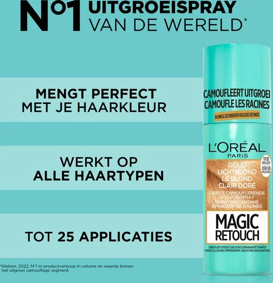 Magic Retouch is een nieuwe haarkleurspray die uw (grijze) uitgroei tijdelijk camoufleert.