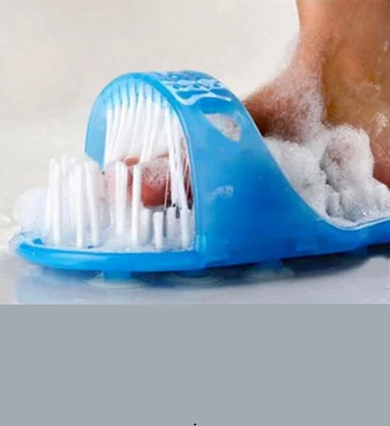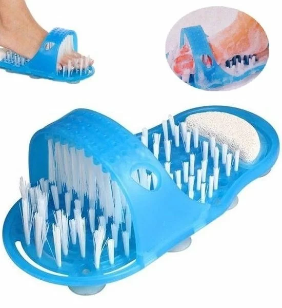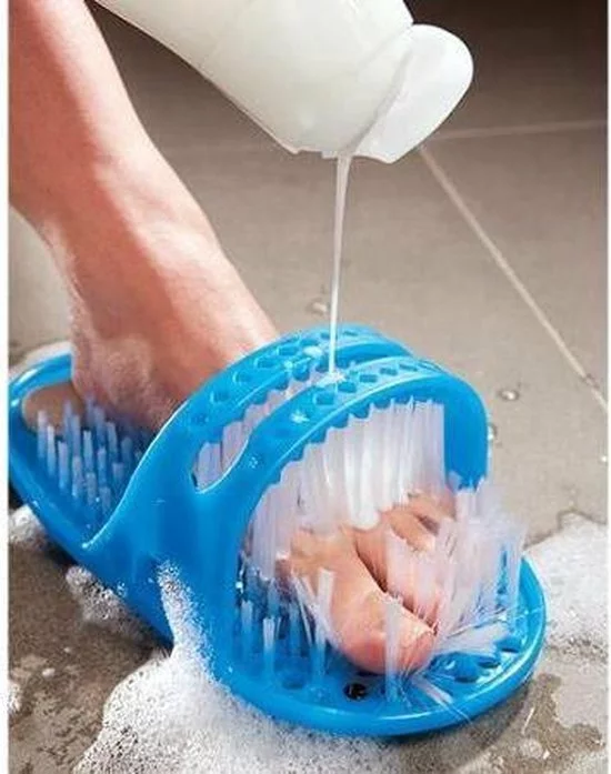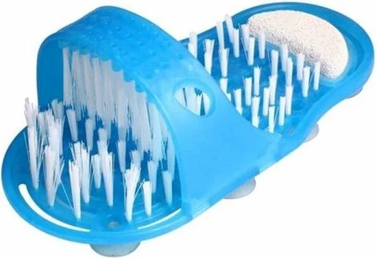 Shower feet is voorzien van meer dan duizend zachte borstelharen die uw voeten schoonmaken, ontdoen van schilfers en masseren. De borstelharen komen ook makkelijk tussen de tenen. Giet wat douchegel of shampoo door de gaten bovenin en u zult al snel genieten van een verzachtend schuim. De hiel bevat zelfs een puimsteen waarmee u droge, schilferende huid kunt verwijderen.