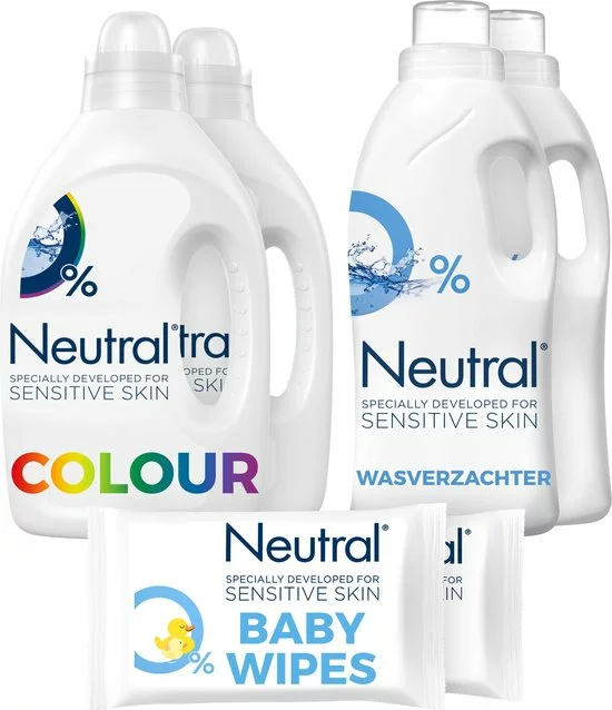 • Producten in de set: Neutral Vloeibaar Wasmiddel Kleur, Neutral Wasverzachter en Neutral Baby Billendoekjes
