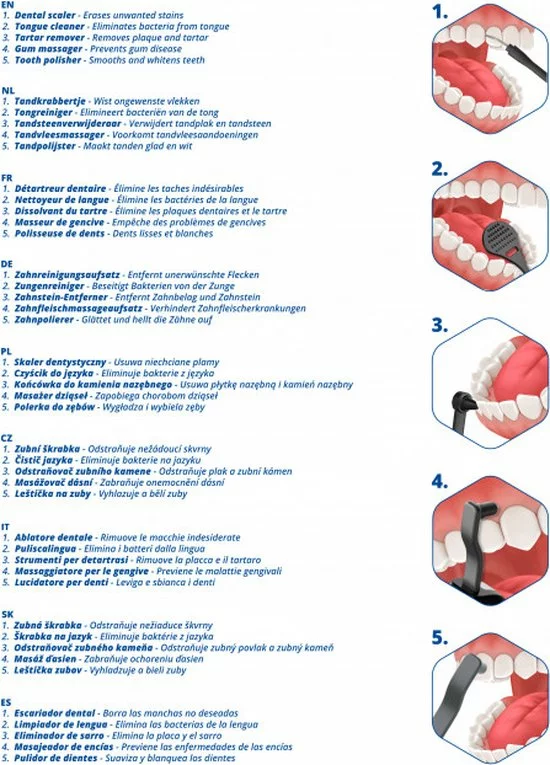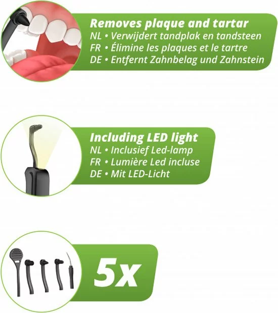 - Inclusief vele opzetstukken voor een grondige reiniging van het hele gebit