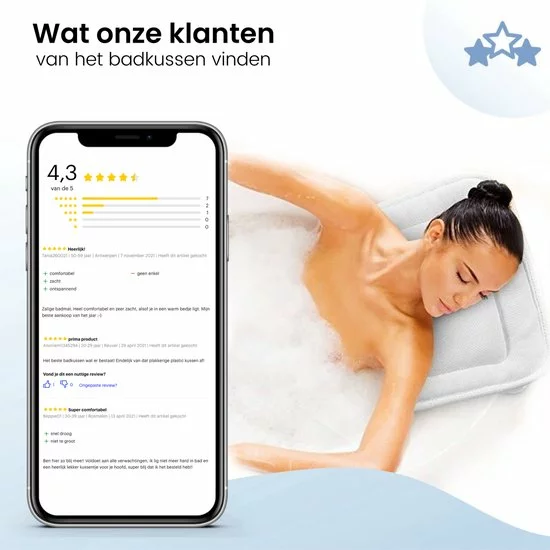 Steeds weer word je geïrriteerd omdat je met je hoofd en rug tegen de harde badrand ligt. De lol is er zo vanaf. Zeker als je wat kleiner bent en steeds wegschuift. Met het full body badkussen lig jij weer heerlijk ontspannen en comfortabel in bad.