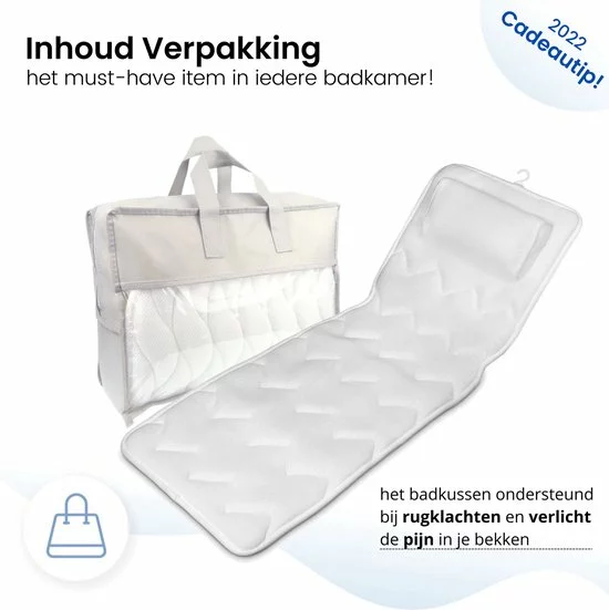 Met het slimme design is het geschikt voor in ieder bad. De afmetingen zijn 120x40cm (LxB). Ook is het badkussen voor iedereen geschikt. Je plaatst het kussen in bad zoals jij het comfortabel vindt liggen.