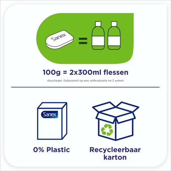 Respecteer je huid met Sanex BiomeProtect Hydration shower bar. Deze solid doucheverzorging voor gezicht, lichaam en handen versterkt de natuurlijke barrière van je huid en houdt de huid gehydrateerd voor een zacht, verzorgd gevoel. Dankzij het exclusieve prebiotische en postbiotische complex, pakt deze Sanex Hydrating bodybar de slechte bacteriën in het microbioom van je huid aan en voedt de goede. De zachte formule bevat geen zeep. Het respecteert de natuurlijke pH-waarde van de huid en is dermatologisch getest. Deze shower bar heeft een speciale vorm die bij elke ronding van je lichaam past. De gebogen achterkant laat minder resten achter op de oppervlakken van je douche of badkuip. De showerbar wordt verkocht in een milieuvriendelijke recyclebare verpakking die 0% plastic bevatten.