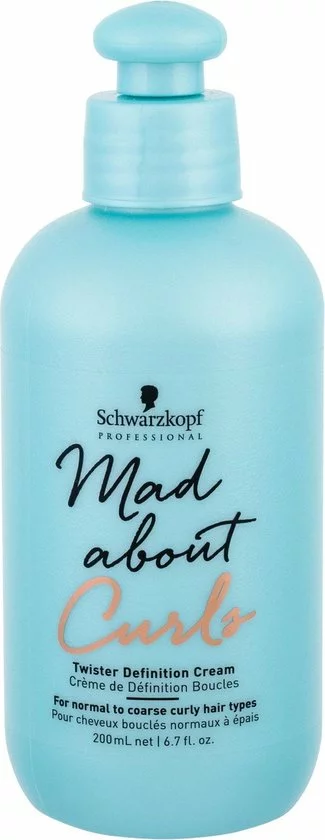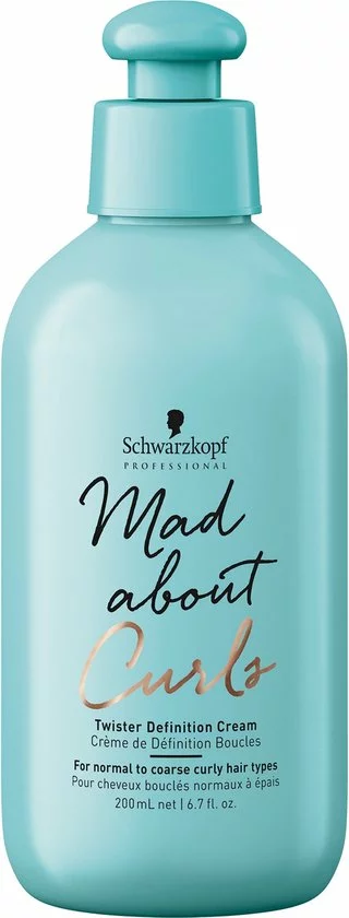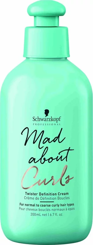 Schwarzkopf Mad About Curls Cream 200ml De Schwarzkopf Mad About Curls Twister Definition Cream is geschikt voor medium tot grove krullen. Met deze crème geeft textuur en definitie aan je haar. Het haar wordt intensief verzorgd en gehydrateerd. Het haar krijgt een mooie, verzorgende look en de definitie blijft lang zichtbaar.