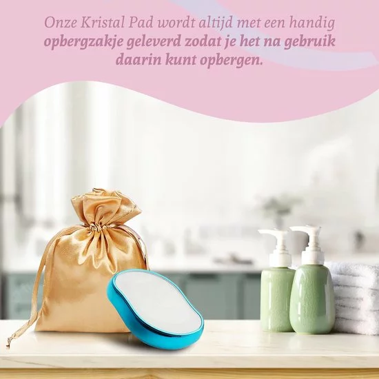 Handig voor in je tas dankzij het opbergzakje. Ga jij plotseling naar het strand maar je hebt je benen niet geschoren? Dan hoef je niet ergens snel met scheerschuim en mesjes in de weer. Je pakt gewoon je kristalpad uit je tas en voor je het weet zijn je benen strand-klaar zonder gedoe!