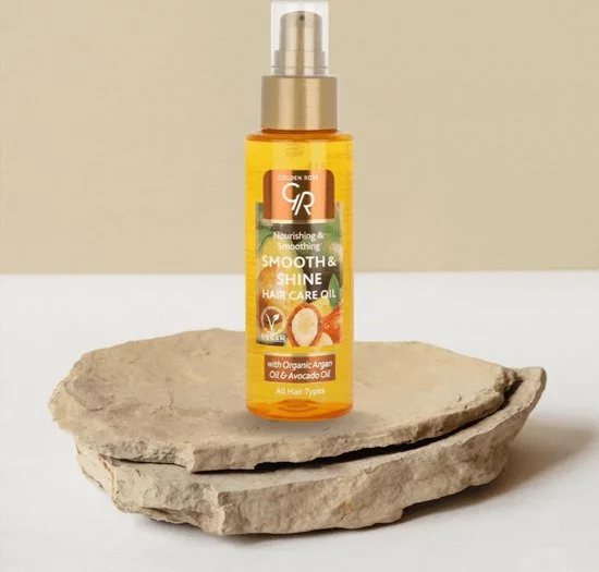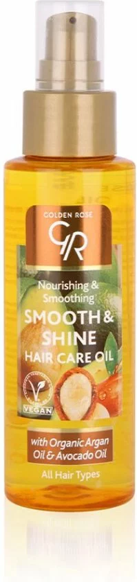 Golden Rose Smooth & Shine Hair Care Oil 100 ml is een verzorgende en voedende haar olie voor alle haartypen. Door de voedende biologische Argan en Avocado olie bevordert het herstel van het haar. Zorgt voor een verbeterende doorkambaarheid, pluis controle en krul controle. De lichtgewicht textuur van de formule verzwaart het haar niet.