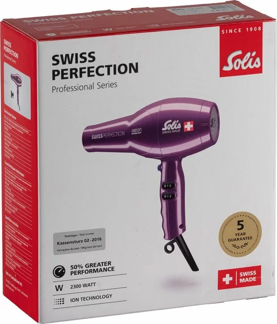 De Solis Swiss Perfection is een prijswinnende haardroger, de föhn is meerdere keren verkozen tot winnaar van ‘The Hairworld World Cup’. Naar wens kun je deze haardroger combineren met de Solis Superflex Softstyler of de Solis Smart Silencer.