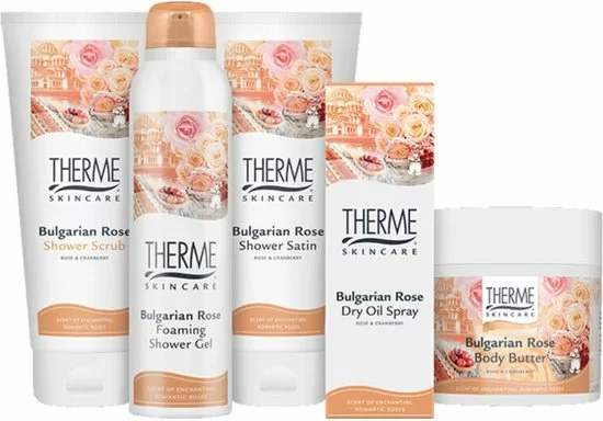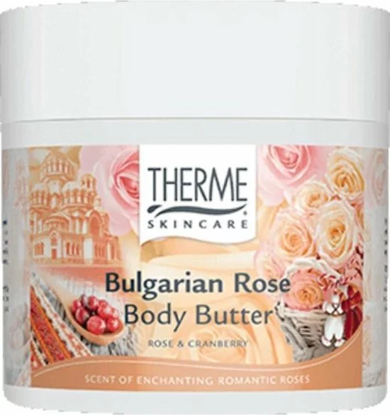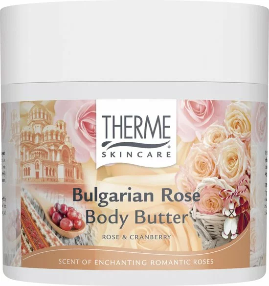 Therme Body Butter Bulgarian RoseDe Bulgarian Rose Body Butter is een rijke en verzorgende Body Butter met een elegante en verleidelijke rozengeur die alle zintuigen betovert. De roos- en cranberryextracten hebben een voedende en verzorgende werking en maken de (droge) huid heerlijk zacht. Combineer met Bulgarian Rose Shower Satin of Badolie voor een heerlijk zachte huid.