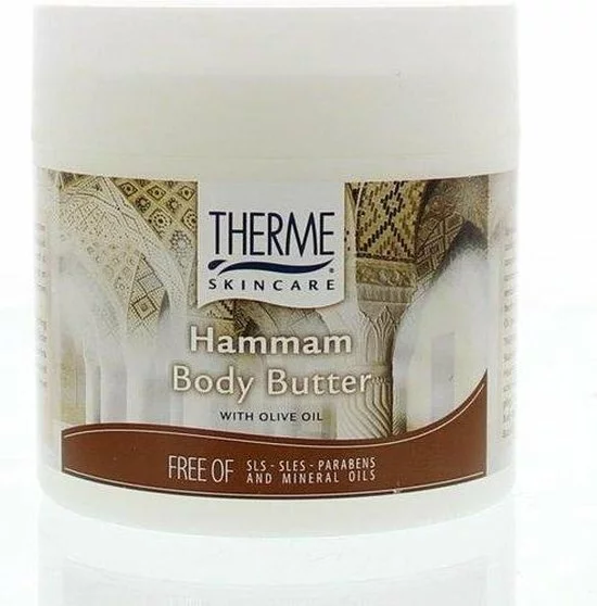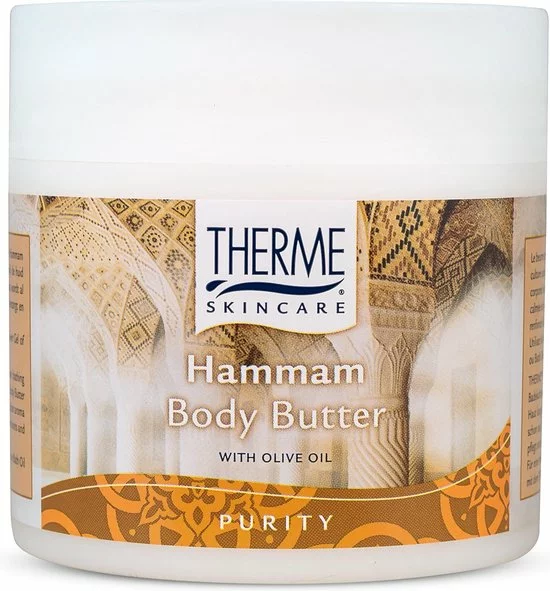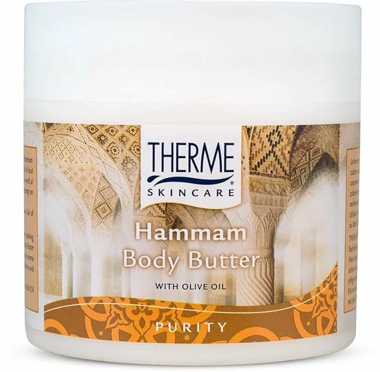 Therme Hammam Body Butter is gebaseerd op de eeuwenoude Hammam badcultuur met ceder- en olijfolie. De Body Butter trekt snel in terwijl de huid langdurig wordt gehydrateerd, gekalmeerd en verzorgd. Het cederaroma wordt al eeuwenlang gebruikt ter versterking van het zelfvertrouwen. Olijfolie verzorgt en voedt de huid.