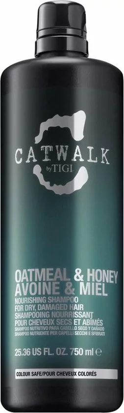 TIGI Catwalk Oatmeal & Honey Nourishing Shampoo is een voedende shampoo die het haar zacht en zijdezacht maakt. De formule, met Acacia honing, tarwe-eiwit en vitamine E helpt droog en beschadigd haar te hydrateren waardoor het haar weer glad en glanzend wordt. De shampoo helpt om het vochtgehalte van het haar op peil de brengen en in balans te houden. Daarnaast ruikt de shampoo ook nog eens heerlijk naar honing. De TIGI Catwalk Oatmeal & Honey Nourishing Shampoo werkt tegen kroes en is veilig voor gekleurd haar. Bovendien is de TIGI Catwalk Oatmeal & Honey Nourishing Shampoo vrij van siliconen.