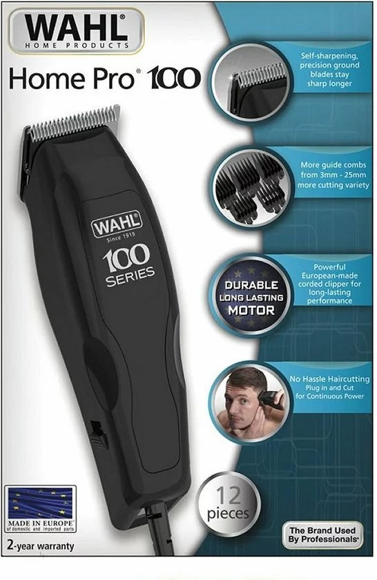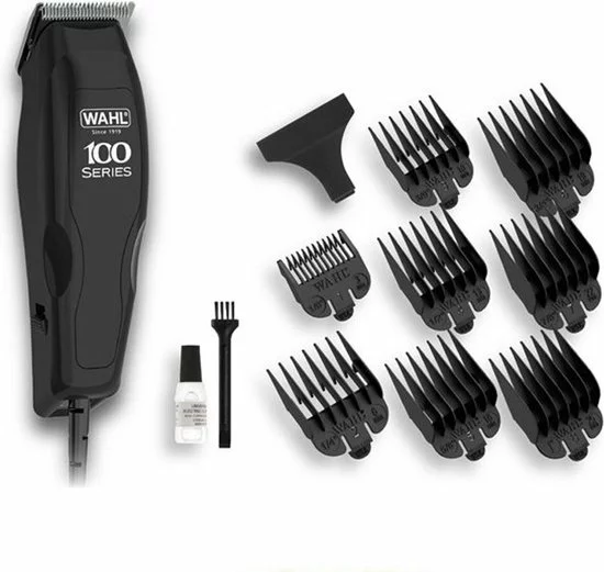 Wahl HomePro 100 Snoertondeuse. Krachtige snoertondeuse met precisiegeslepen snijmes. Inclusief 8 opzetkammen, reinigingsborsteltje en olie.