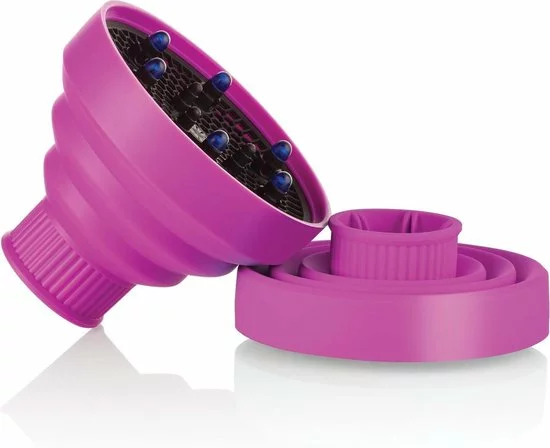 Professional Haircare Intrekbare Siliconen Diffuser is een uitvouwbare, universele diffuser, gemaakt van warmte-isolerende siliconen. Past op elke fohn met een mondbreedte tot 52mm (buitenkant gemeten). De diffuser wordt over de mond van de föhn geschoven. De warme lucht wordt gelijkmatiger over het haar verdeeld waardoor het minder snel uitdroogt. Gemakkelijk in- en uit te vouwen. Niet geschikt voor fohns met een kort mondstuk, of een die breed uitloopt!